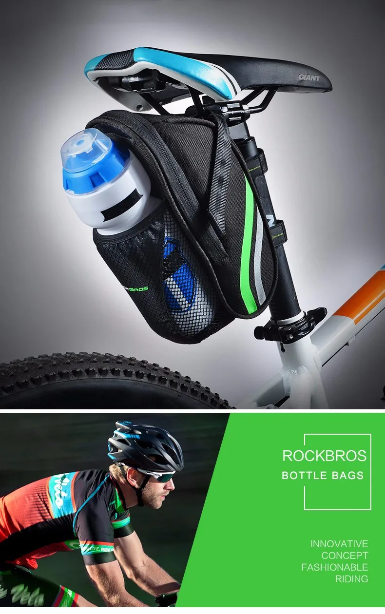 ROCKBROS Outdoor Cycling Mountain Bike Back Seat Bicycle Rear Bag Nylon Bike Saddle Bag Bicycle Accessories Tail Pouch Package Product details: Brand Name: ROCKBROS Description: Bicycle Saddle RearBag Material: 900*600D Nylon + 210D Polyester Size: C7:L24*W9.6*H10.5 Weight C7:187g color: black green Features: Stap design for quick release & installation Suitable for a variety of bicycles High quality fabrics Hot stamping LOGO on lining Reflective strip for safe nighttime riding Buyer show